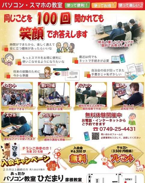 ただいま、パソコン教室ひだまりでは1月末まで入会キャンペーンを実施中です!