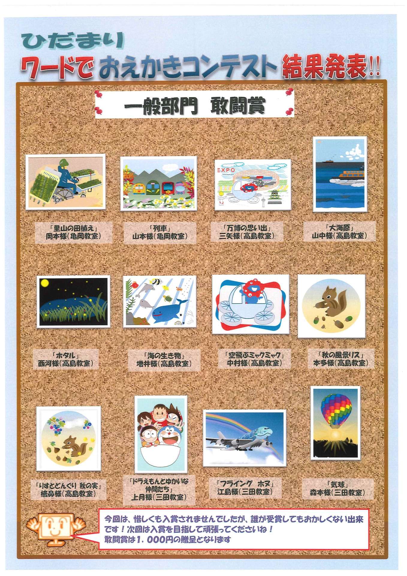 ワードお絵かきコンテストのひだまり賞も結果発表~