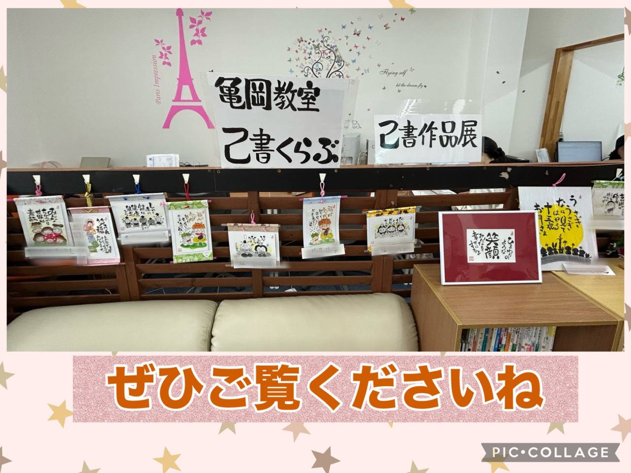 亀岡教室では、己書くらぶが月1回活動しています。今は教室内で作品の展示会を開催をしています。