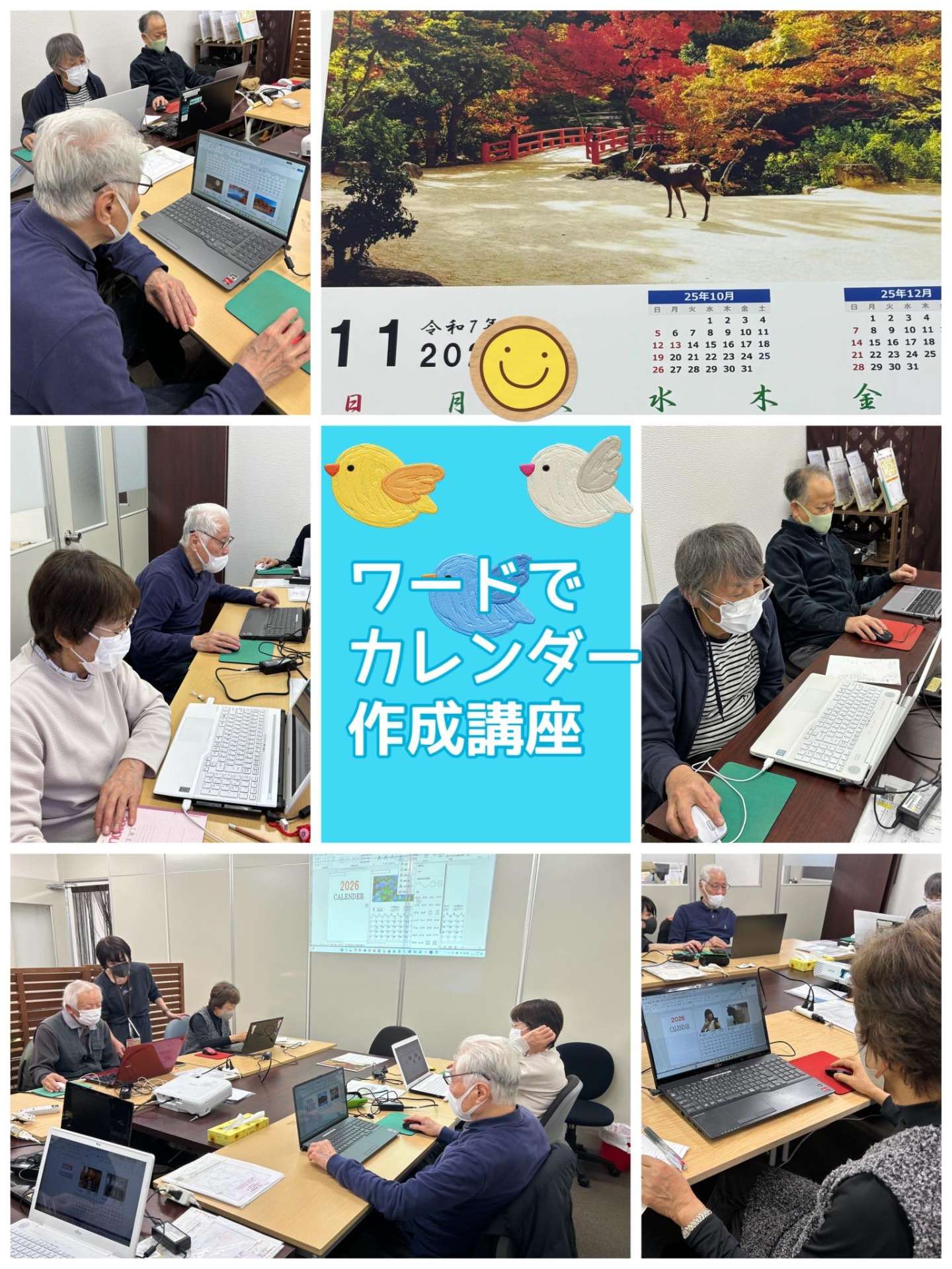 本日のプチ講座『カレンダー講座』を行いましたもうそんな時期なんですねN根様は毎年、年末年始の挨拶代わりに親戚やお知り合いに配られています。2026カレンダー、家族写真やペット写真や西国33カ所参り…