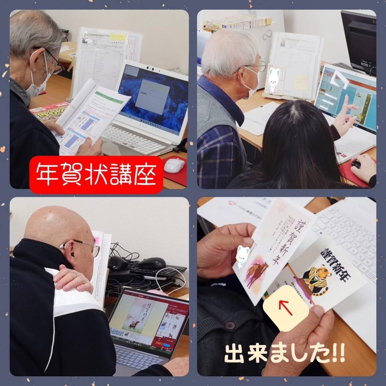 こんにちは(^^♪パソコン教室ひだまり高島教室です。早いもので、今年も残すこと1ヶ月となりましたね~ここ近年年賀状を作成される方が少し減りさみしいですね。。ですが高島教室ではまだ多くの方が年賀状…