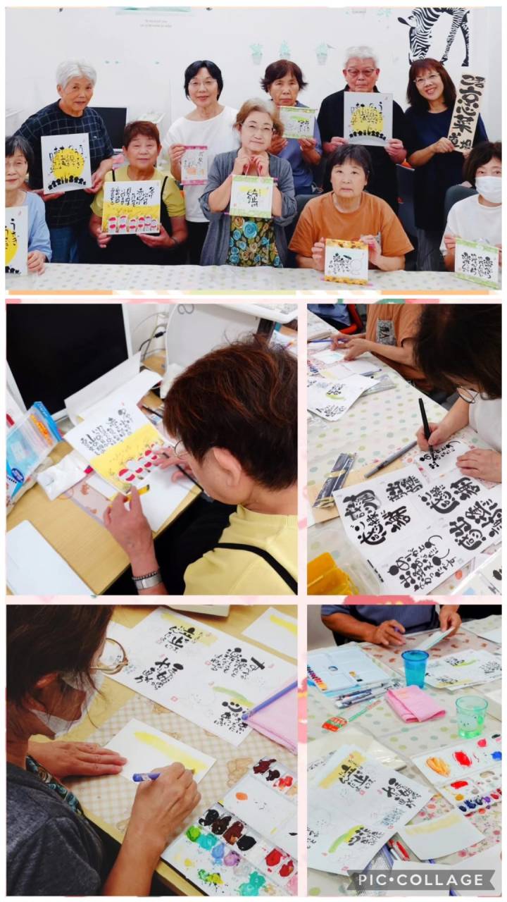 【己書くらぶ 第3回活動日】|ひだまり亀岡教室 6月に亀岡教室で初めてのクラブ活動が発足し、月1回の活動日の設定で9月は第3回目でした。それまでもプチ講座でやっておられたので、みなさん楽しくお喋りしながら書く余裕も出てこられ、また絵の具を使…